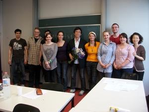 Am 21.06.2011 fand in der FU eine vom IKS organisierte Sondervorlesung des koreanischen Dichters Shin Yong-mok, der gegenwärtig mit Unterstützung des Arts Council Korea (ARKO) in Deutschland weilt, statt. Shin Yong-mok (Jahrgang 1974) gehört zur jüngeren Generation erfolgreicher koreanischer Autoren und hat sich neben literaturwissenschaftlichen Veröffentlichungen – er lehrt derzeit an der Korea University und an der Chungju University – vor allem als Poet einen Namen gemacht. Sein Vortrag unter dem Thema „Die Sorgen der jungen Dichter in Korea“ stieß auf starkes Interesse der mehrheitlich studentischen Zuhörer. Anhand ausgewählter eigener und fremder Werke sowie Beispielen aus der klassischen Literatur erörterte er den Wandel der Gedichtliteratur im Zuge des gesellschaftlichen Wandels seit den 1980er Jahren. In der sich anschließenden lebhaften Diskussion wurden Fragen wie z. B. die persönliche Motivation für das Gedichteschreiben, die Wechselwirkungen zwischen politischer Botschaft und ästhetischem Anspruch sowie die Problematik im Zusammenhang mit der Reflexion Nordkoreas in der südkoreanischen Poetik-Landschaft behandelt.