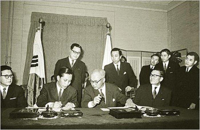 Ein besonders bedeutendes außenpolitisches Ereignis, welches nicht nur Südkorea und Japan, sondern die gesamte Struktur der internationalen Beziehungen in Nordostasien beeinflusste und welches in Südkorea einen Sturm des Protestes auslöste, war die mit dem Abkommen vom 22. Juni 1965 eingeläutete Normalisierung zwischen Südkorea und Japan. Insgesamt 13 Jahre und acht Monate dauerten die entsprechenden Verhandlungen zwischen den beiden Ländern. Doch wie kam das Abkommen zustande, welche Motive standen dahinter und wie war die Reaktion der südkoreanischen Bevölkerung? Nachdem Rhee Syngman bereits kurz nach dem Friedensvertrag von San Francisco die Aufnahme von Gesprächen zwischen Japan und Korea forderte, wurden diese nach amerikanischer Vermittlung im Oktober 1951 aufgenommen. Angesichts der zahlreichen ungelösten Probleme – etwa die Frage von Reparations- und Entschädigungszahlungen, Territorialfragen sowie ungeklärte Eigentumsansprüche – waren die Gespräche immens schwierig und verliefen dementsprechend schleppend. Ein wesentlicher Grund hierfür war nicht zuletzt auch die anti-japanische Haltung der Rhee-Administration, die aus Gründen der Stabilisierung der eigenen Machtpositionen eine strikte anti-japanische Haltung einnahm. Der Zusammenbruch des Rhee-Regimes bot der Verbesserung der Beziehungen der beiden Länder dann eine neue Chance. Die Jang Myun-Regierung nahm in dieser Frage denn auch eine aktive Haltung ein, doch eine weitereichende Annäherung gelang vorerst nicht. Park Chung Hee hatte nicht zuletzt seine ganz eigenen und persönlichen Gründe für eine Normalisierung mit Japan hatte. Ferner verband er mit einer Normalisierung auch die Hoffnung, seine geringe Legitimität durch einen wirtschaftlichen Schub stärken konnte. Japan hingegen sah in dem Militärregime von Park Chung Hee hingegen eine einmalige Chance, eine Normalisierung mit Südkorea „ohne Parlament und Hindernisse“ umsetzen zu können. Nichtsdestotrotz gingen die Gespräche vorerst sehr langsam voran, weshalb Park im Oktober-November 1962 Kim Jong Pil als Spezialgesandten des Präsidenten zu geheimen Gesprächen mit dem japanischen Außenminister Masayoshi Ohira entsandte. Die im Frühling 1964 wieder aufgenommenen Verhandlungen wurden von studentischen Protestdemonstrationen begleitet und als Park ankündigte, bis März 1964 ein Übereinkommen zu schließen, entstand massiver Widerstand in der südkoreanischen Gesellschaft. Die Unterzeichnung dieser Übereinkunft, so die Meinung der Demonstranten, sei überstürzt und ein Ausdruck der demütigen Haltung gegenüber Japan. Aus der Oppositionspartei und aus prominenten Persönlichkeiten aus Gesellschaft, Religion und Kultur ging ein „landesweiter Kampfausschuss gegen die schmachvolle Diplomatie der Regierung gegenüber Japan“ hervor. Am Tag nach dem Treffen zwischen Kim Jong Pil und Ohira am 24. März 1964 fanden Proteste von etwa 4000 Studenten an verschiedenen Universitäten in Seoul statt. Trotz aller Widerstände unterzeichneten der südkoreanische Außenminister Lee Dong-Won und der japanische Außenminister Shiina Etsusaburo am 22. Juni 1965 schließlich den Grundlagenvertrag zwischen Südkorea und Japan (hanilgibonjoyak), sowie dreißig weitere Abkommen und Zusatzakten. Der Normalisierungsvertrag erschien vielen Kritikern wie ein ungerechtfertigter Schlussstrich unter eine im Grunde genommen noch nicht annähernd aufgearbeitete und bewältigte historische Vergangenheit der koreanisch-japanischen Beziehungen. Ungeachtet massiver Proteste boxte die Regierung Mitte August 1965 binnen zweier Tage zwei wichtige Gesetzesvorlagen unilateral durch: neben dem Normalisierungsabkommen, welches am 14. August ratifiziert wurde, bewilligte die DRP unilateral die Vorlage, Soldaten in den Vietnamkrieg zu entsenden.